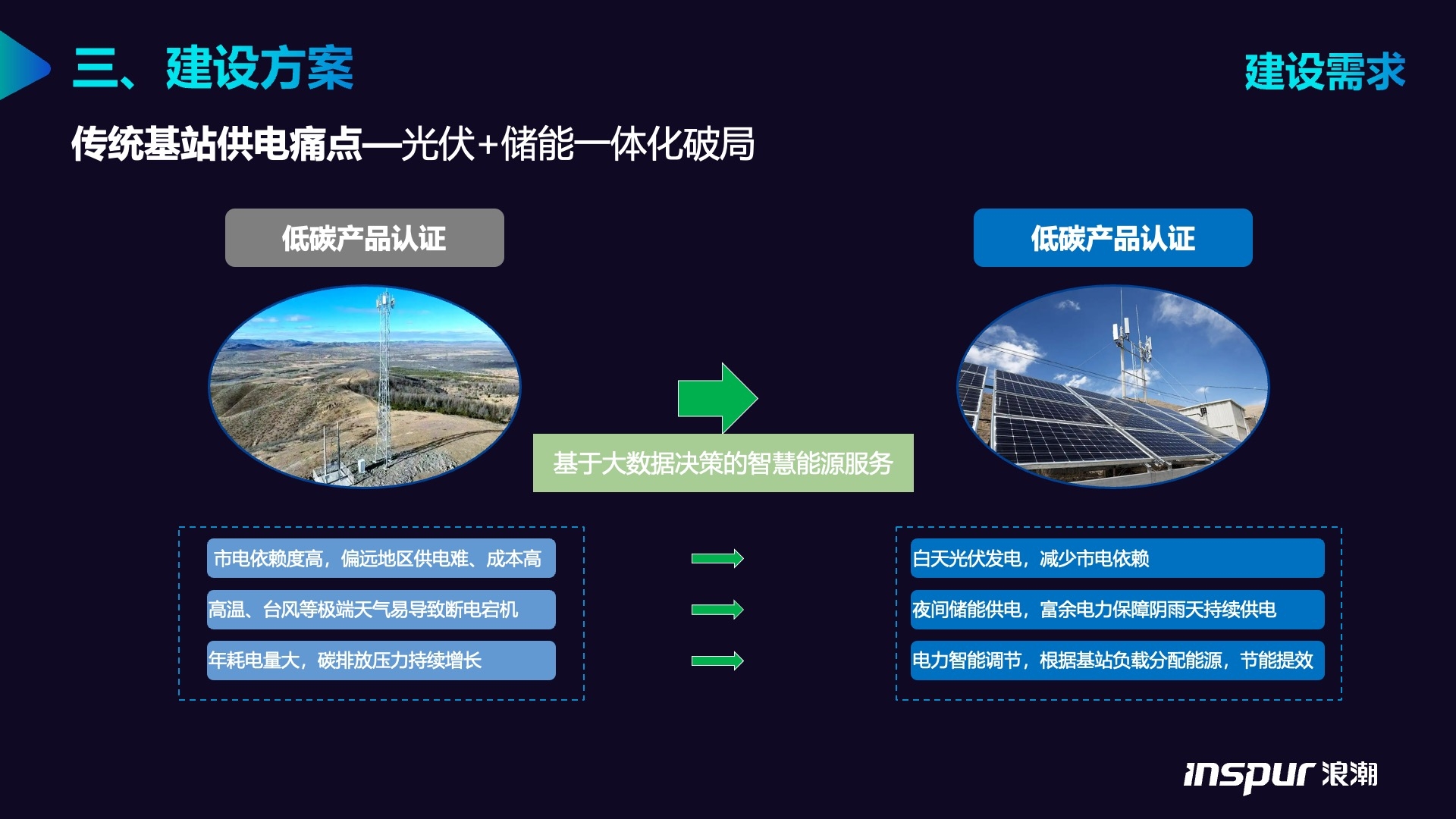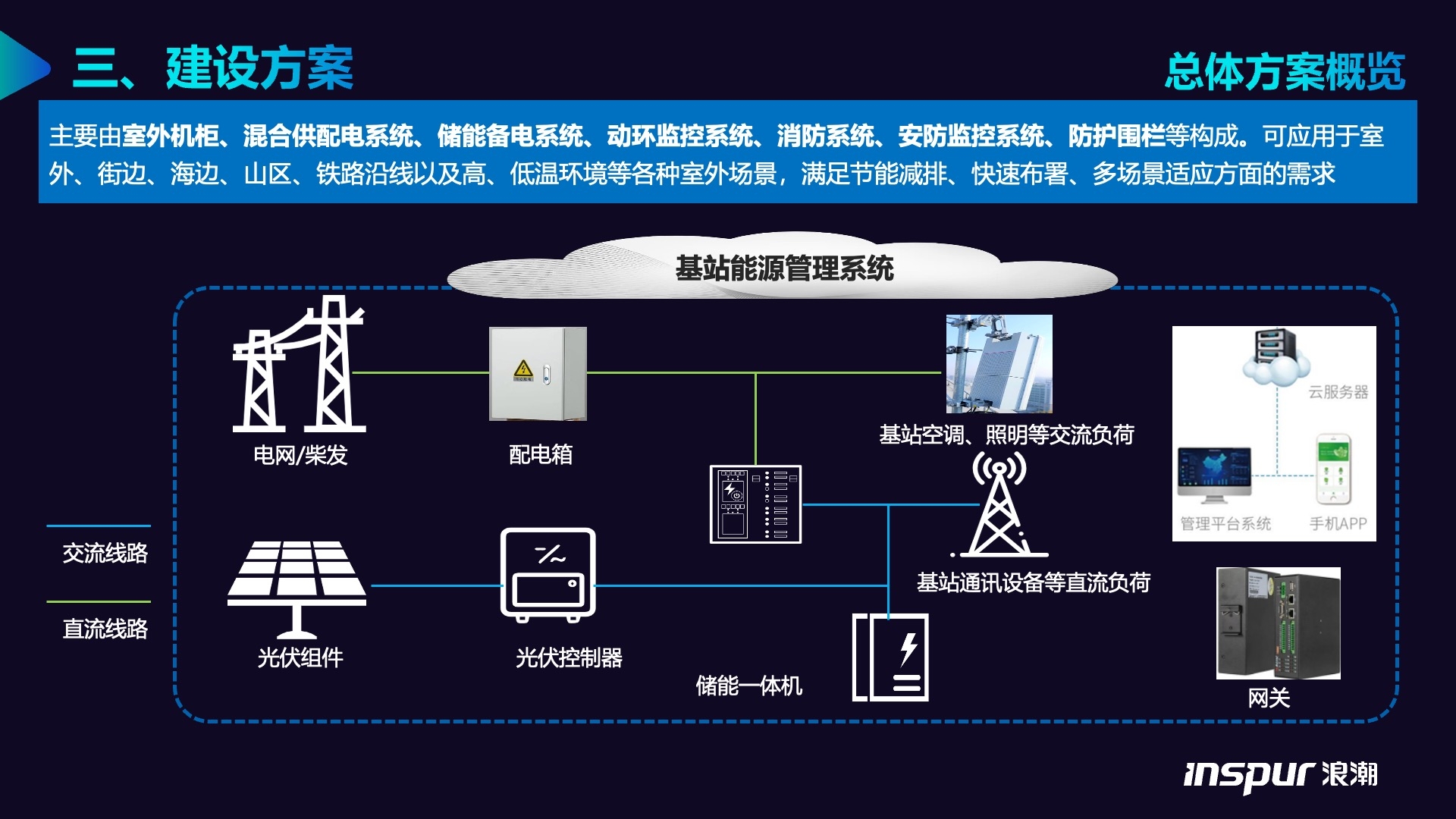 针对电网覆盖薄弱或供电稳定性要求高的基站场景,构建集 “光伏发电 - 储能备用 - 充电适配 - 柴油发电兜底” 于一体的独立供电系统,实现基站 24 小时不间断供电,兼顾清洁能源利用与极端场景保障。