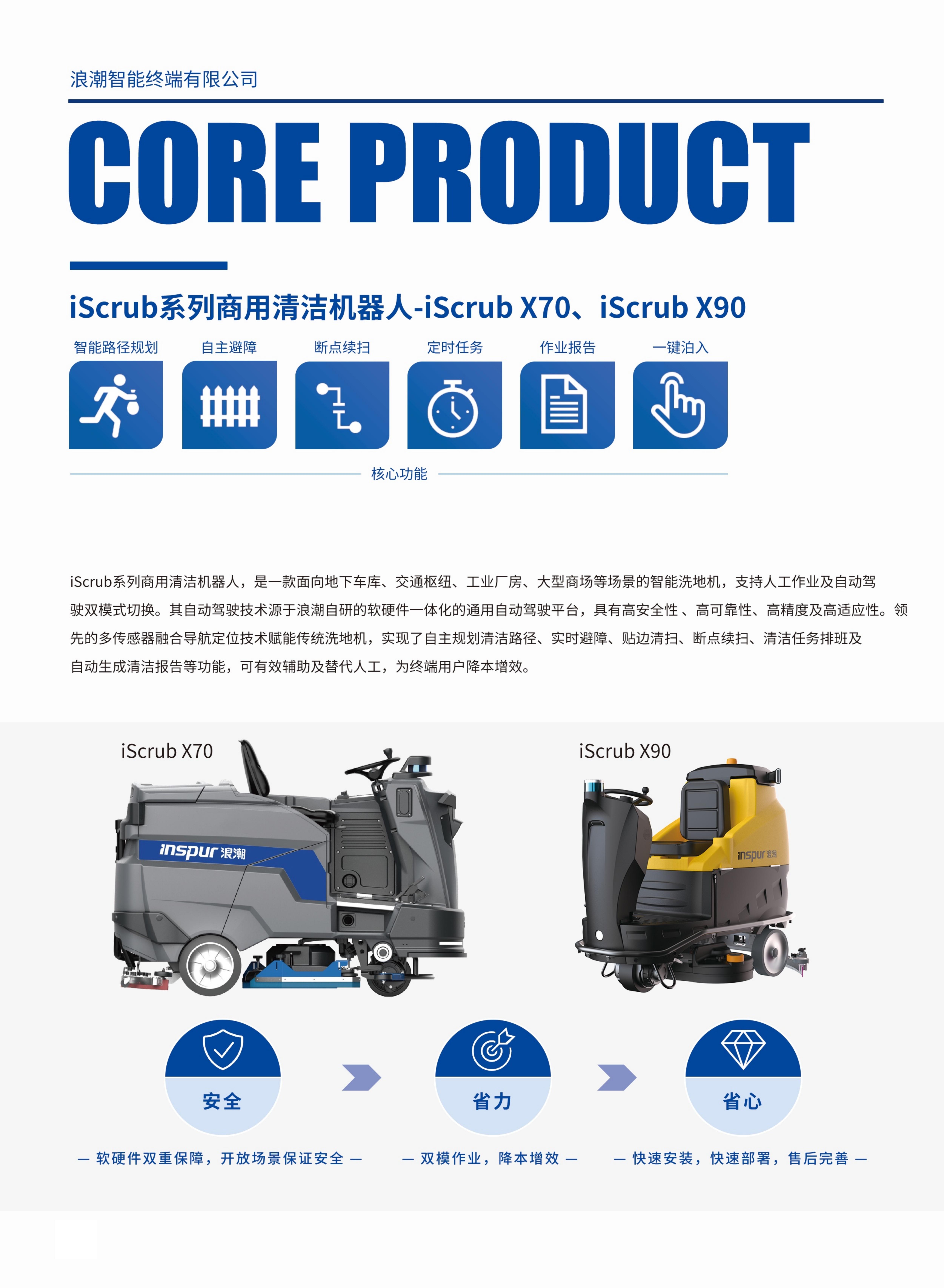 浪潮商用清洁机器人iScrub X70、iScrub X90