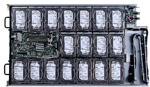 (3)高密度 1U空间内部署18块3.5寸大容量硬盘,单节点可实现144T 超大存储空间。每柜最高可搭载40节点,存储空间超过5PB,相比于通用服务器,部署密度增加300%。