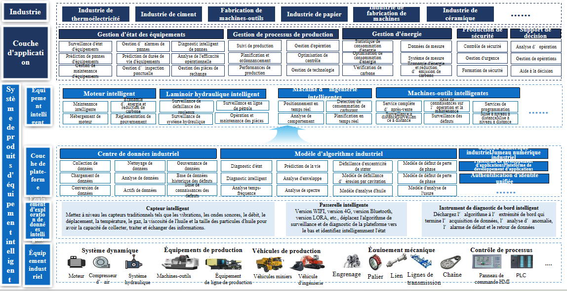 Basé sur la vibration de ?machine + modèle de mécanisme + algorithme? en tant que noyau technologique, créé un système de produit d’intégration de logiciel et matériel de ?produit + plate-forme + service?