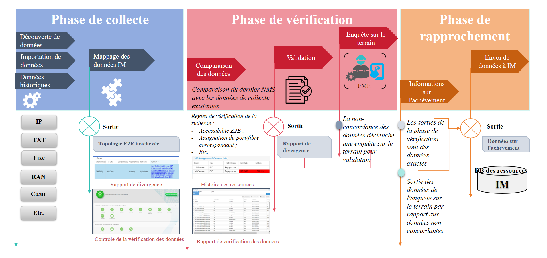 Découverte et réconciliation automatiques, avec de nombreuses règles de vérification pour garantir l'exactitude, l'intégrité et la cohérence des donnéesLes règles multidimensionnelles telles que la règle du nom des ressources unifiées, la topologie, l'intégrité des données EMS, imposent des contraintesAudit des données et journal des modifications pour vérifier la qualité des données sur les ressources en termes d'intégrité, d'exactitude et de cohérence.