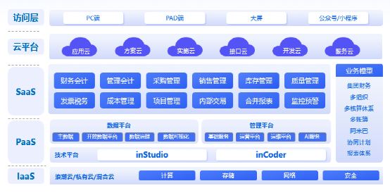 作为面向成长型企业的新一代开源云ERP,浪潮inSuite基于端到端的一体化业务架构,聚焦多元化数字场景,提供财务云、供应链云、制造云、云开发平台等业财资税票的一体化应用,支持阿米巴经营模式,打通企业内外价值链,实现全产业链协同,支持企业上云和全球化资源配置,满足多组织、多利润中心管理需求,全面重构企业数字化能力。